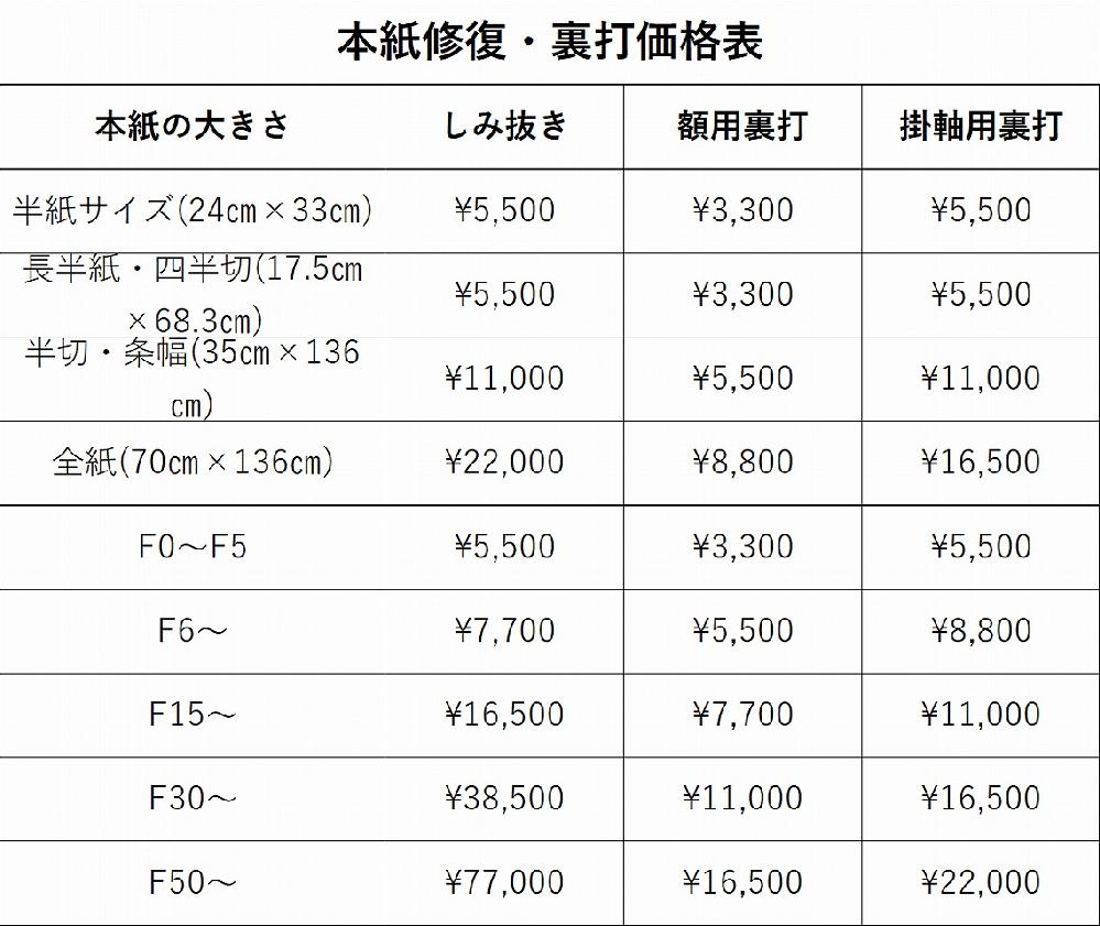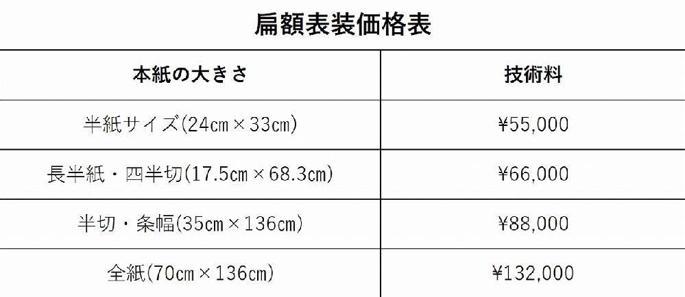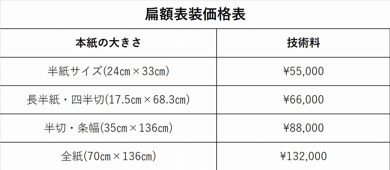 掛軸の表装価格については作品の大小に関わらず手間はほとんど同じです。